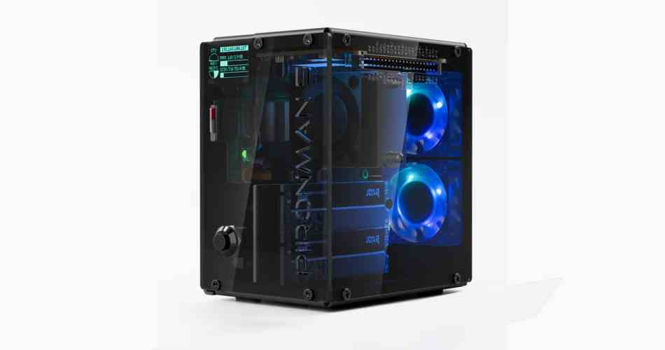A high-performance case for the Raspberry Pi 5 with dual NVMe M.2 slots (RAID 0/1 support), AI accelerator compatibility (like Hailo-8L), PCIe Gen2 switch, and advanced cooling with a PWM tower cooler and dual RGB fans. It includes dual transparent RGB panels, a smart OLED display with vibration wake-up, and optimized port layout (dual HDMI, USB-C power, 4K output). Ideal for NAS, AI edge computing, Home Assistant, or gaming. (Raspberry Pi not included.)